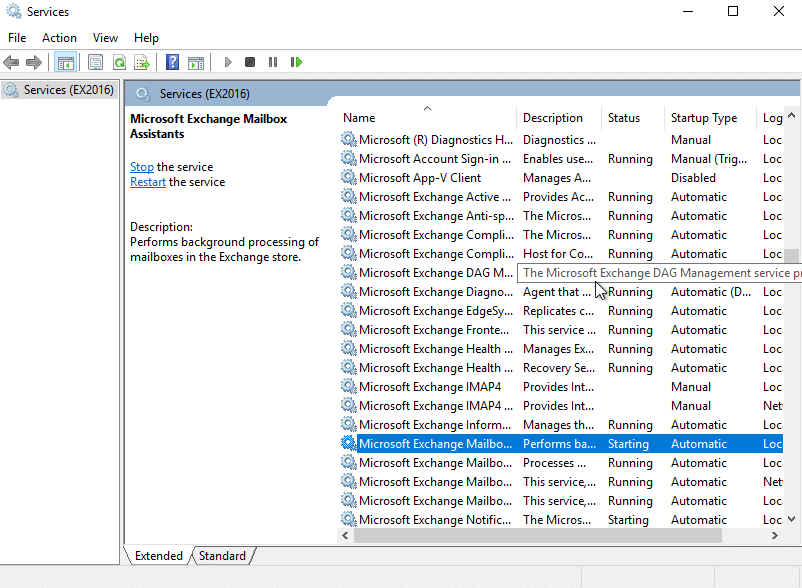 As you can see, services where still starting, others had not started and a few were running. Start each service and wait for it to enter running mode.