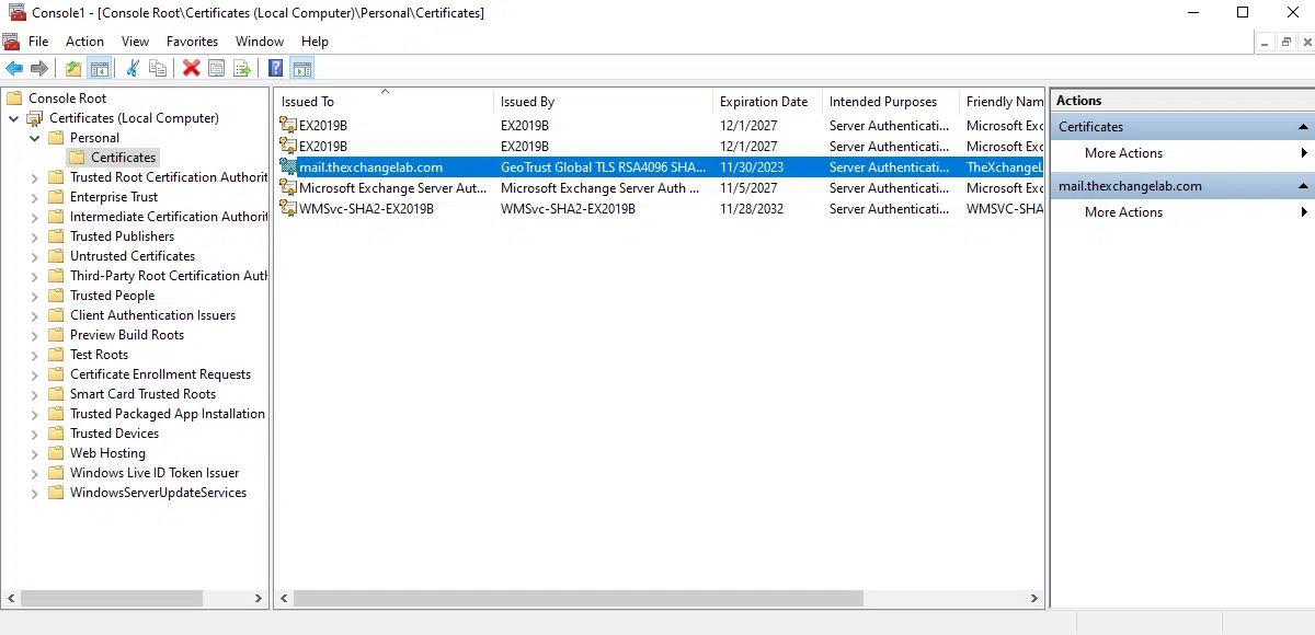 The same applies to exporting the certificate, you cannot do this from the EAC anymore, it has to be done from PowerShell or the MMC with the Certificates Snapin.