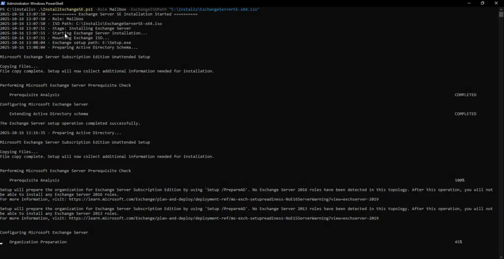 Write-Log "========== Exchange Server SE Installation Completed ==========" "SUCCESS"